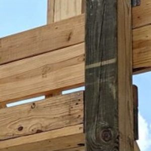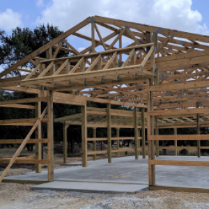Post Frame buildings are a combination of factory manufactured and built on site. The roof system of Post Frame buildings are built in factories using press’s and jigs to form large roof trusses. The walls are typically random lengths of lumber which need to be cut on site by contractors. Delivery to site from order is typically 6-8 weeks and unloading is done by forklift. Oregon pine 16’ 6×6 post 122- 142#