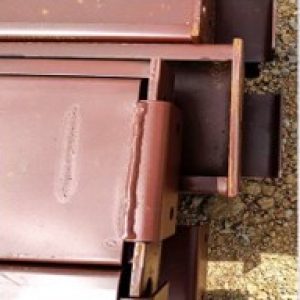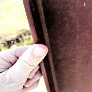 Structural steel has a painted finish typically in the red although can come in many colors. The paint is intended only to protect the steel during construction and transport and is easily damaged.